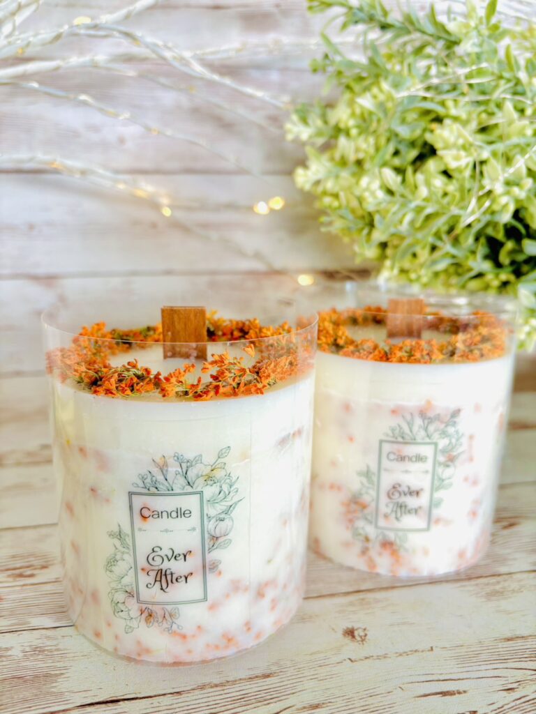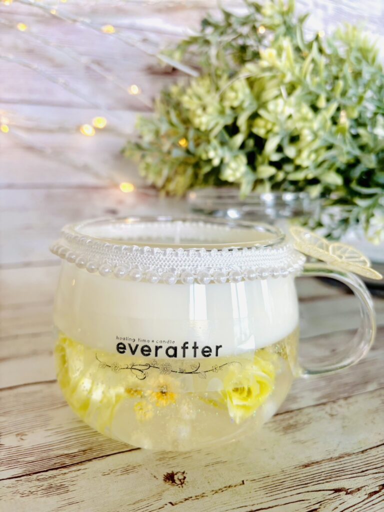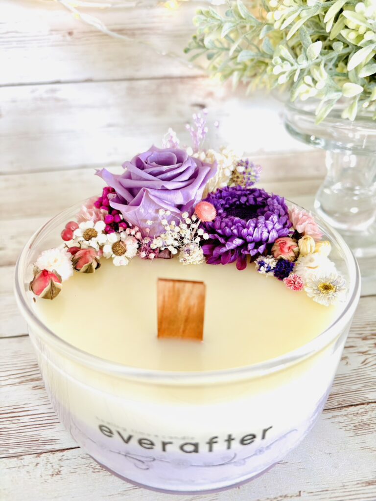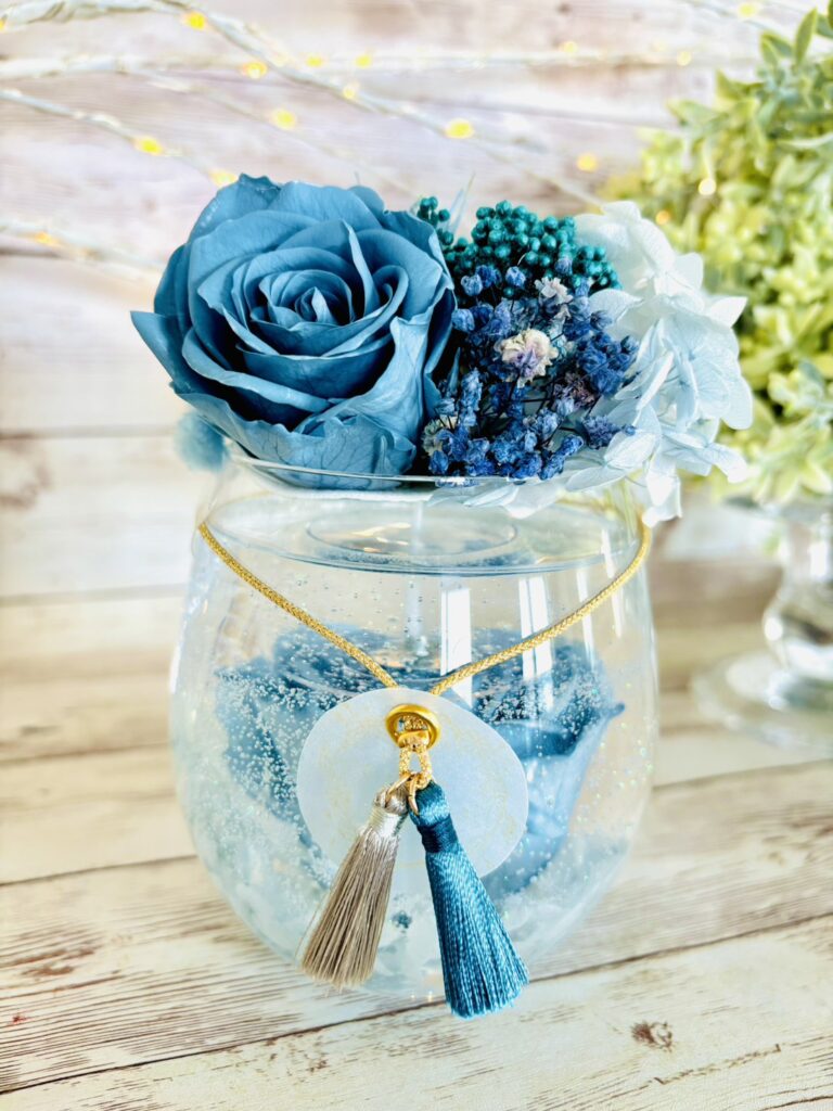 ガーベラとフリルビオラのキャンドル ライトブルー