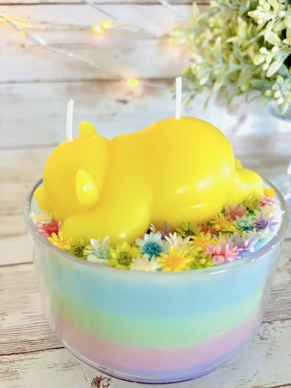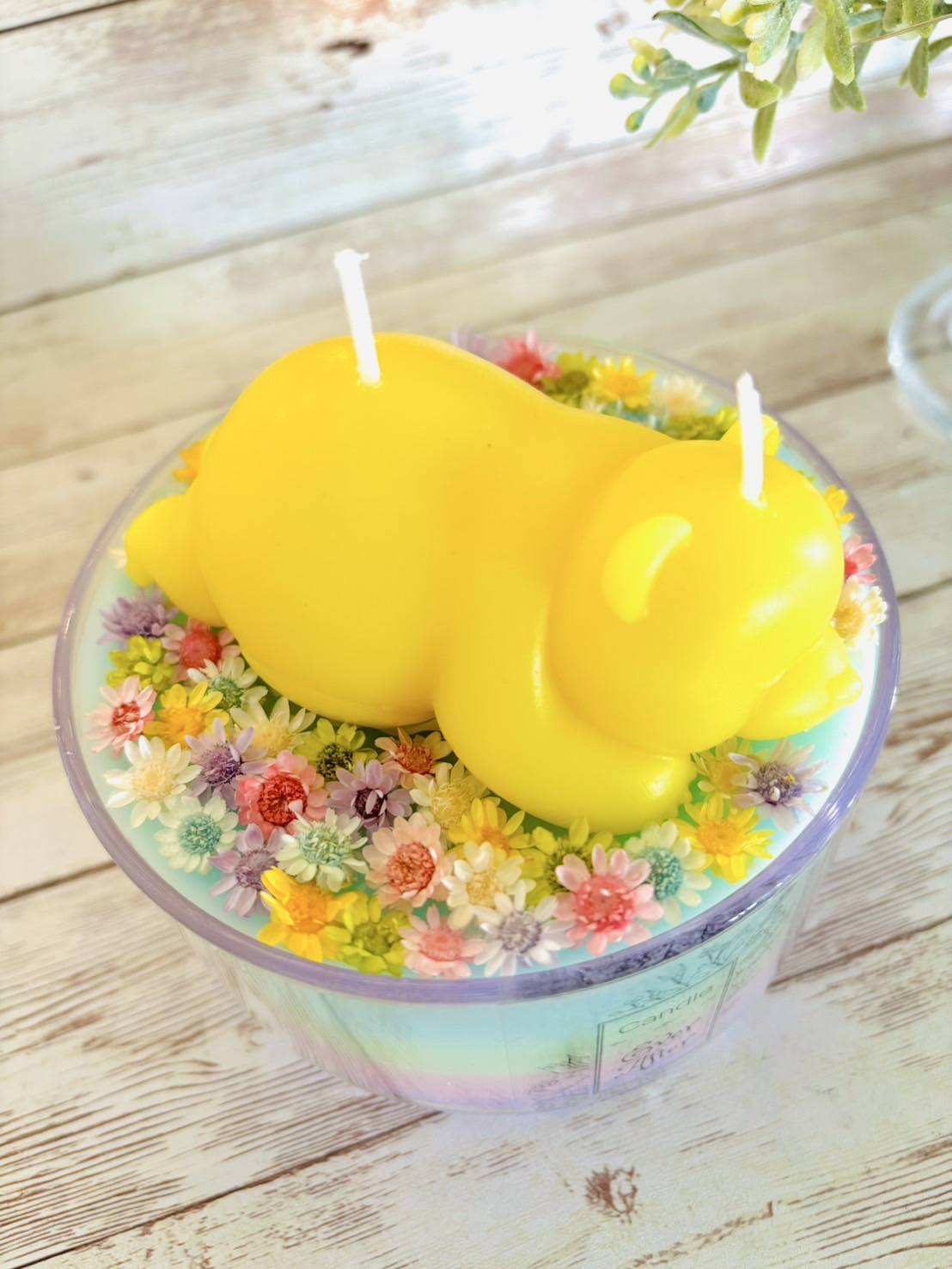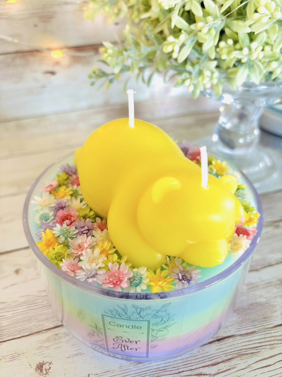くまさんにはハニーキャラメルの香りがしますので点灯してロウが溶けていくにつれて2つの香りがミックスされていくのもお楽しみいただけます。